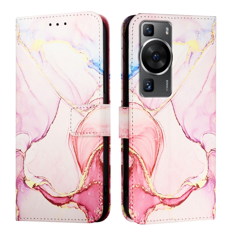 Funda de Cuero con Tapa para Huawei P60 / P60 Pro Pt003 con Patrón de Mármol (Oro Rosa)