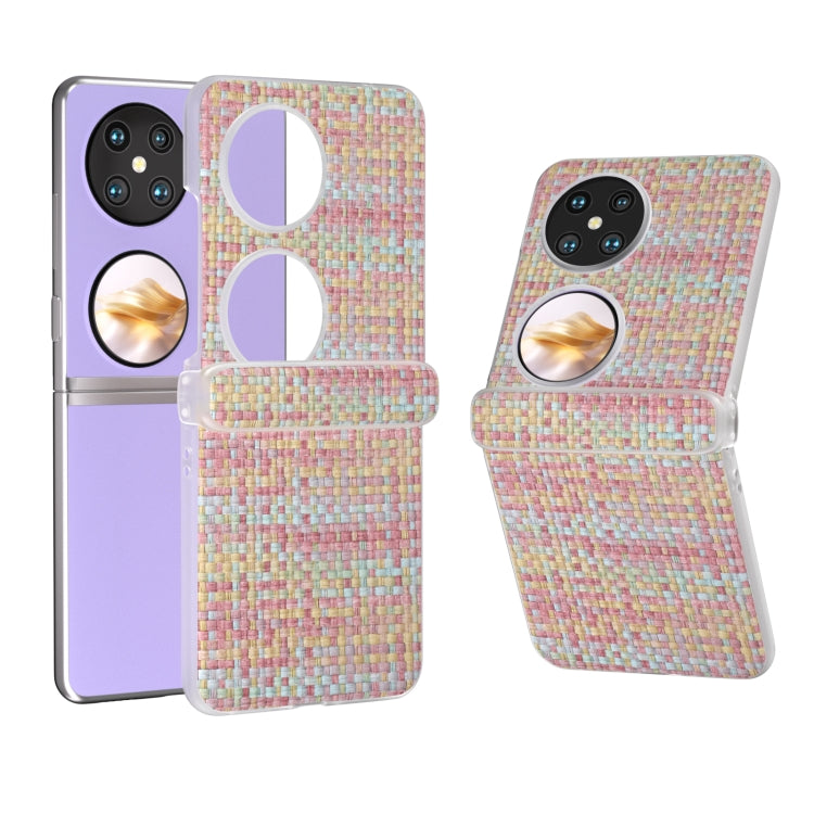 Funda 3 en 1 para Huawei Pocket 2 de PU con Marco Translúcido Esmerilado y Textura Rómbica (Rosa)