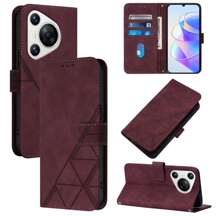 Funda de Cuero para Huawei Pura 70 Crossbody con Tapa en Relieve 3D (Rojo Vino)