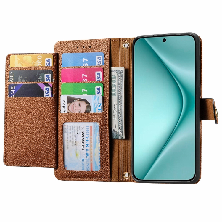• 1x Funda de Cuero para Huawei Pura 70 Love con Zipper y Lanyard (Marrón)
