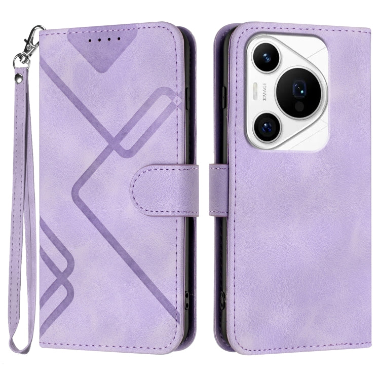 Funda de Cuero para Huawei Pura 70 Pro/70 Pro+ con Patrón de Línea (Púrpura Claro)
