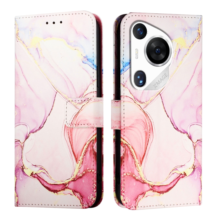 Funda de Cuero con Tapa para Huawei Pura 70 Pro / 70 Pro + Pt003 con Patrón Mármol (Oro Rosa)