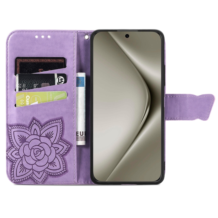 Funda de Cuero para Huawei Pura 70 Pro+ con Relieve de Flor y Mariposa (Lavanda)