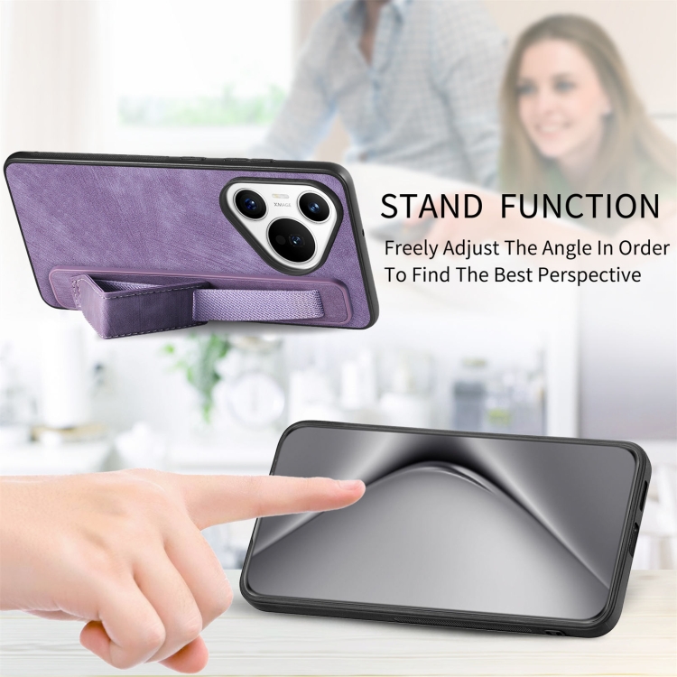 Funda Trasera de Cuero Retro con Muñequera para Huawei Pura 70 Pro (Púrpura)