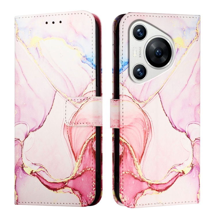 Funda de Cuero para Huawei Pura 70 Pt003 con Tapa y Patrón Mármol (Oro Rosa)
