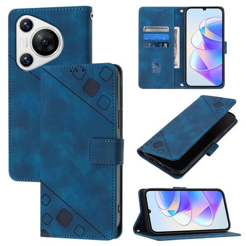 - 1x Funda de Cuero Huawei Pura 70 Skin Feel para Teléfono en Relieve (Azul)