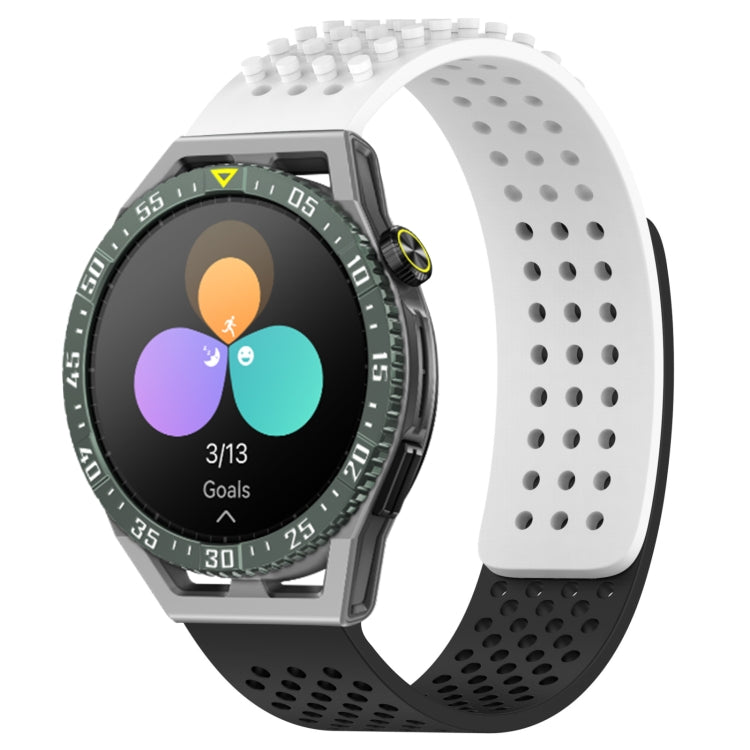 Correa de Silicona para Huawei Watch GT3 SE con Puntos 3D Transpirables y Orificios 22mm (Blanco + Negro)