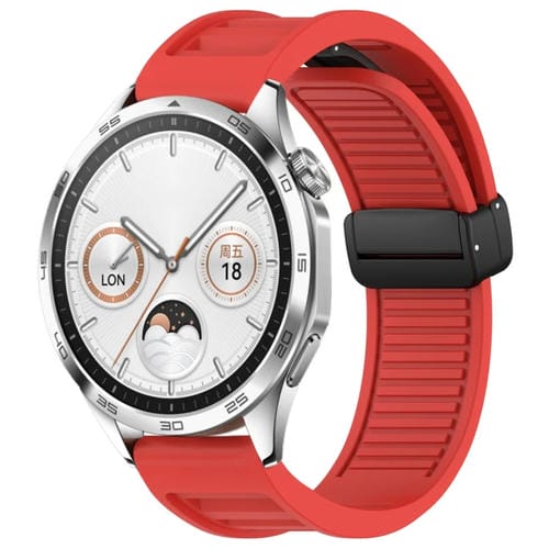 Correa de Reloj Silicona Huawei Watch GT4 46mm 22mm Hebilla Magnética Plegable (Rojo)