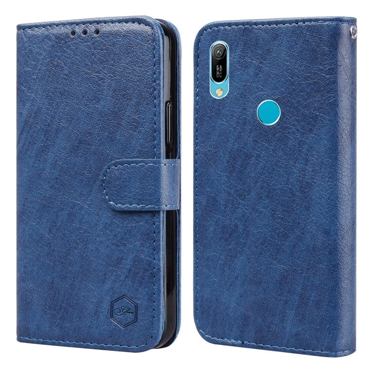 Funda para Huawei Y6 2019 PU Cuero Aceitoso + TPU Sensación de Piel (Azul Oscuro)