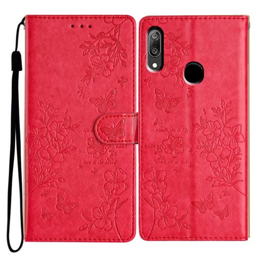 Funda para Huawei Y7 2019 de Cuero con Relieve de Flor y Mariposa (Rojo)