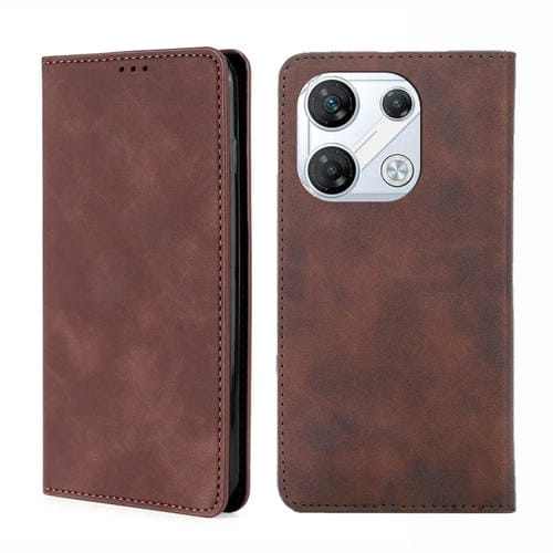Funda de Cuero Magnética Skin Feel para Infinix Gt 10 Pro 5G (Marrón Oscuro)