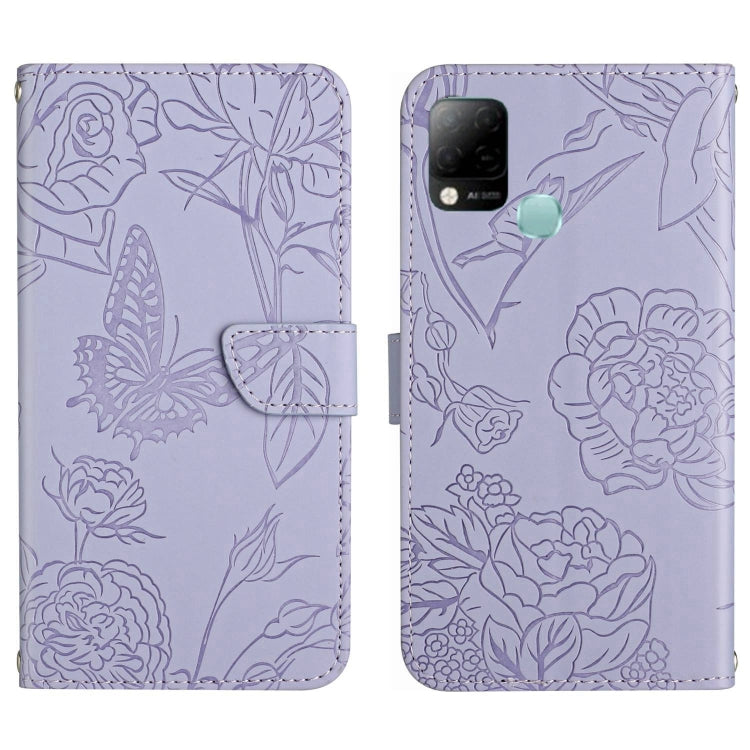 Funda de Cuero para Infinix Hot 10S/10T Ht03 con Tapa en Relieve y Diseño Butterfly (Púrpura)