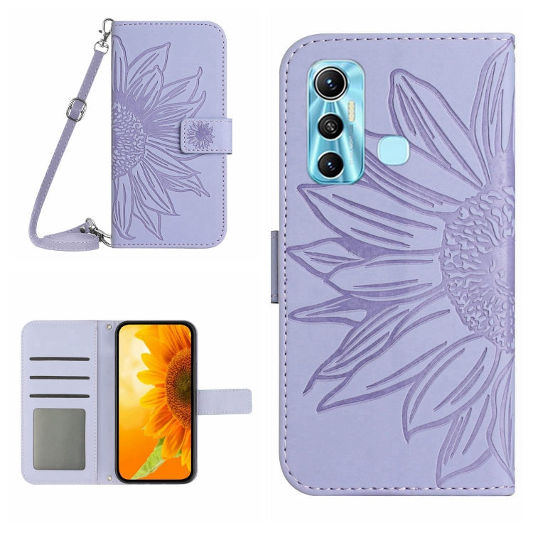 Funda Flip de Cuero para Infinix Hot 11 Skin Feel con Cordón y Patrón Sun Flower (Púrpura)