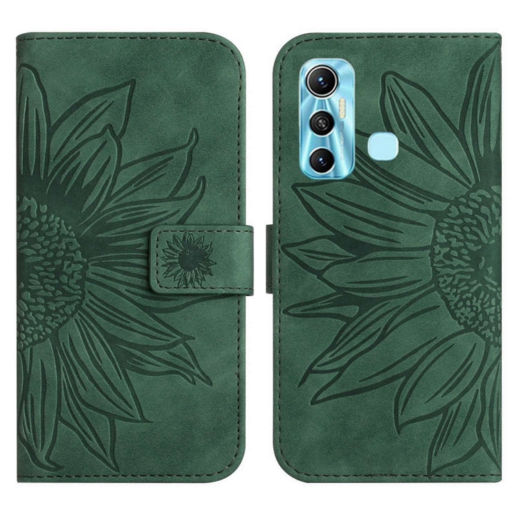 Funda de Cuero Flip para Infinix Hot 11 con Cordón y Diseño Sun Flower (Verde)