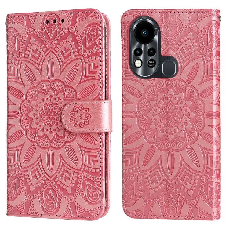 Estuche para Teléfono Infinix Hot 11S de Cuero con Estampado de Girasol en Relieve (Rosa)