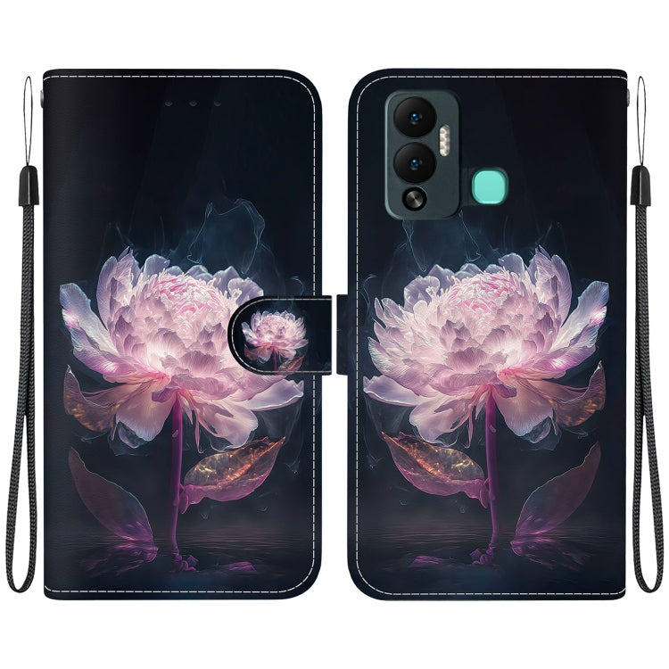 Estuche de Cuero para Infinix Hot 12 Play con Dibujo Coloreado y Textura de Cristal (Peonía Púrpura)
