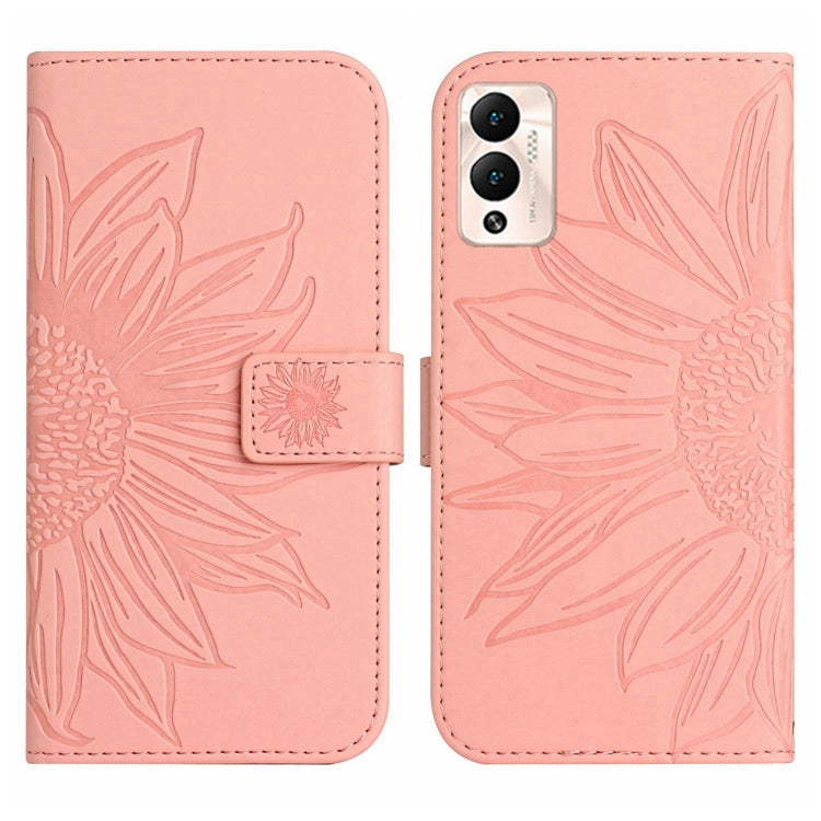 Funda Flip de Cuero para Infinix Hot 12 Play Skin Feel con Cordón y Diseño Sun Flower (Rosa)