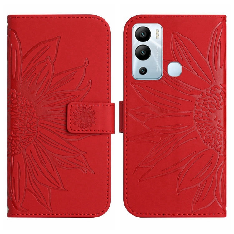 Funda de Cuero Flip para Infinix Hot 12I Skin Feel con Cordón y Diseño Sun Flower (Rojo)