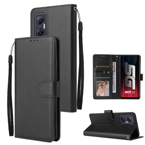 Funda de Cuero para Infinix Hot 20 5G con 3 Ranuras para Tarjetas (Negro)