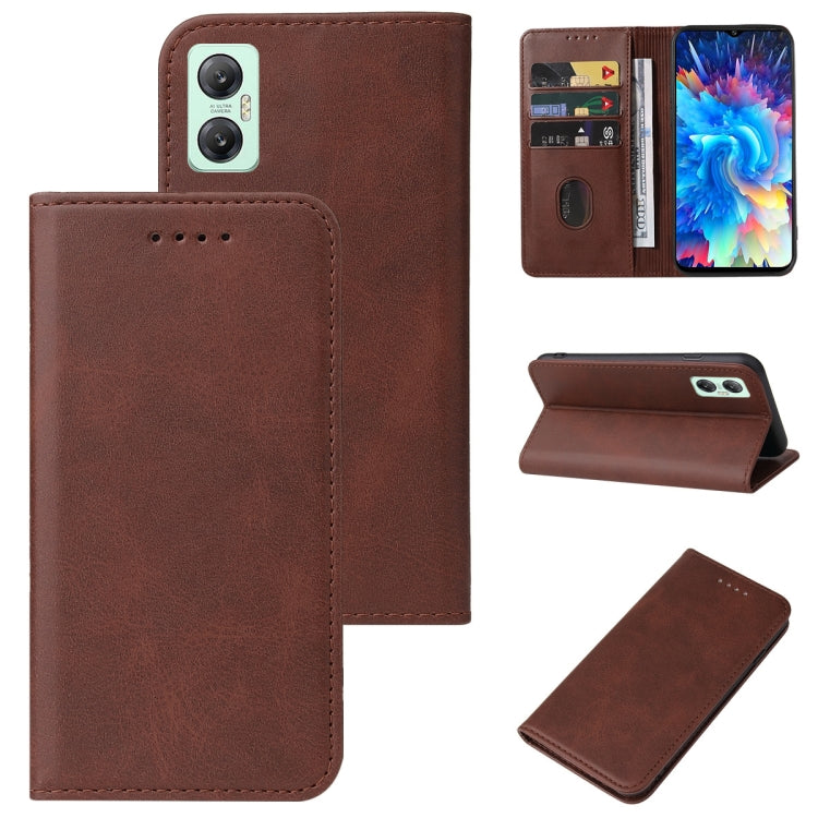 Funda de Cuero con Cierre Magnético para Infinix Hot 20 5G (Marrón)