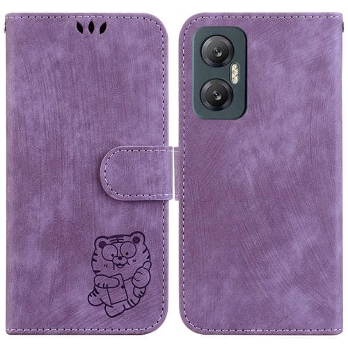 Funda de Cuero En Relieve para Infinix Hot 20 5G Little Tiger (Púrpura)