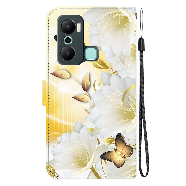 Estuche de Cuero para Infinix Hot 20 Play con Dibujo Coloreado y Textura de Cristal (Epiphyllum de Mariposa Dorada)