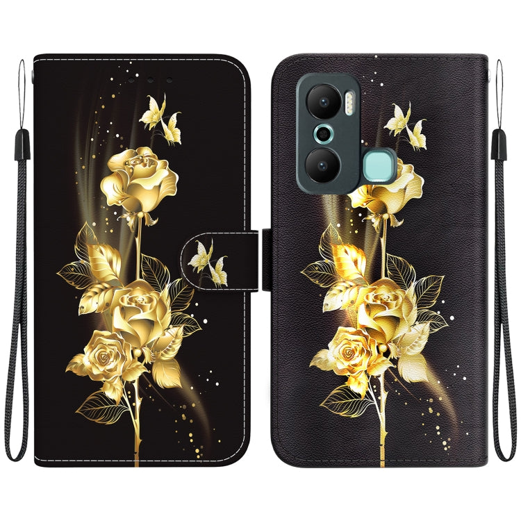 Estuche de Cuero para Infinix Hot 20 Play con Dibujo Coloreado y Textura de Cristal (Mariposa Dorada Rosa)