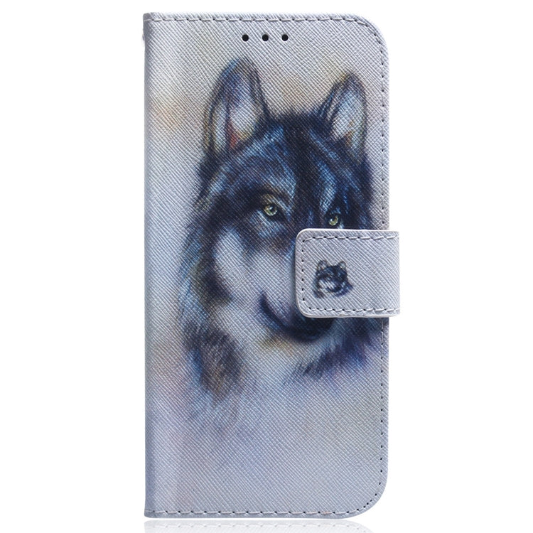 Estuche de Cuero para Infinix Hot 20 Play con Tapa y Dibujo Coloreado (Lobo Blanco)
