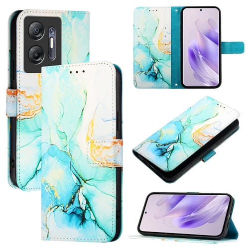 Funda para Teléfono Infinix Hot 30 5G Pt003 Cuero con Tapa y Patrón de Mármol (Verde)