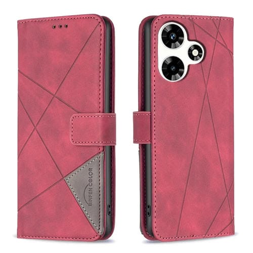 Funda para Teléfono Infinix Hot 30 Cuero Textura de Rombo Hebilla Magnética (Rojo)