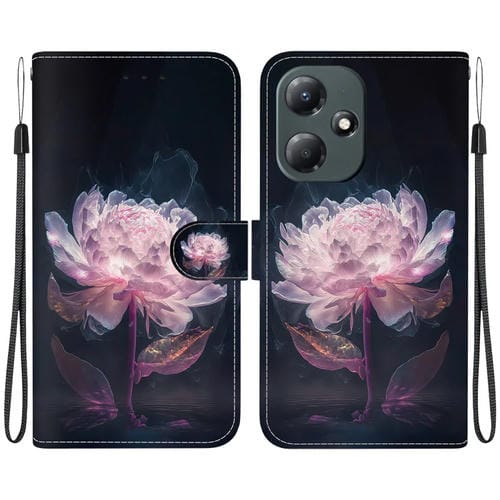 Funda para Infinix Hot 30 Play X6835 de Cuero con Dibujo Coloreado y Textura de Cristal (Peonía Púrpura)