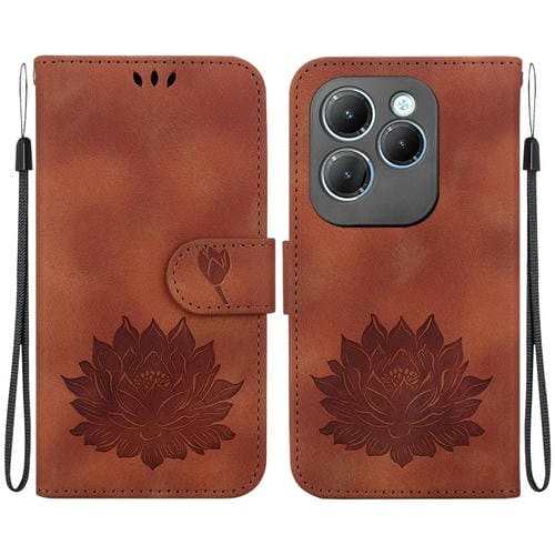 Funda de Cuero En Relieve para Infinix Hot 40/40 Pro Lotus (Marrón)