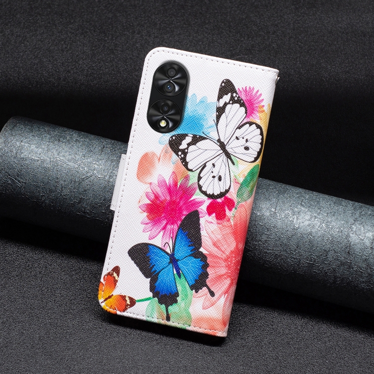 Funda de Cuero para Infinix Hot 40I con Patrón de Dibujo Coloreado (Mariposas)