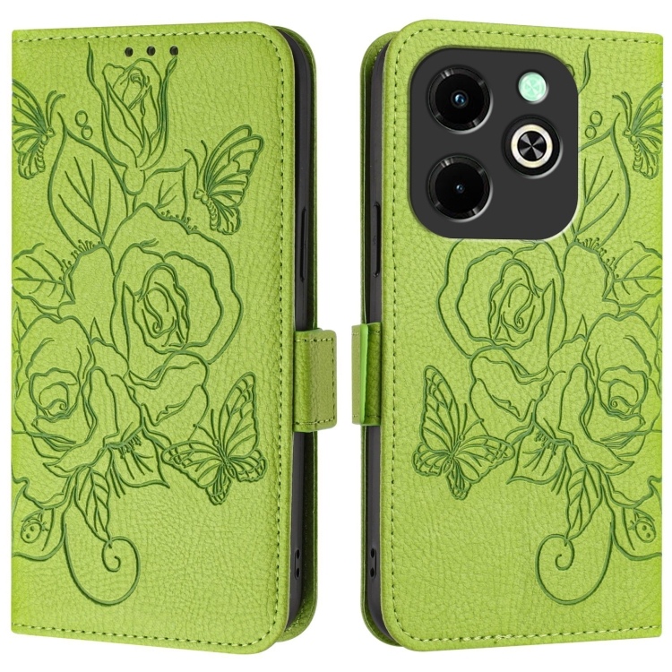 Funda de Cuero Antirrobo RFID para Infinix Hot 40I con Rosa en Relieve (Verde)