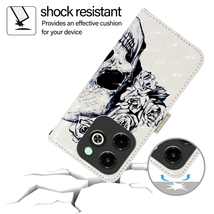 Funda para Infinix Hot 40I de Cuero con Tapa Horizontal y Pintura 3D (Calavera)