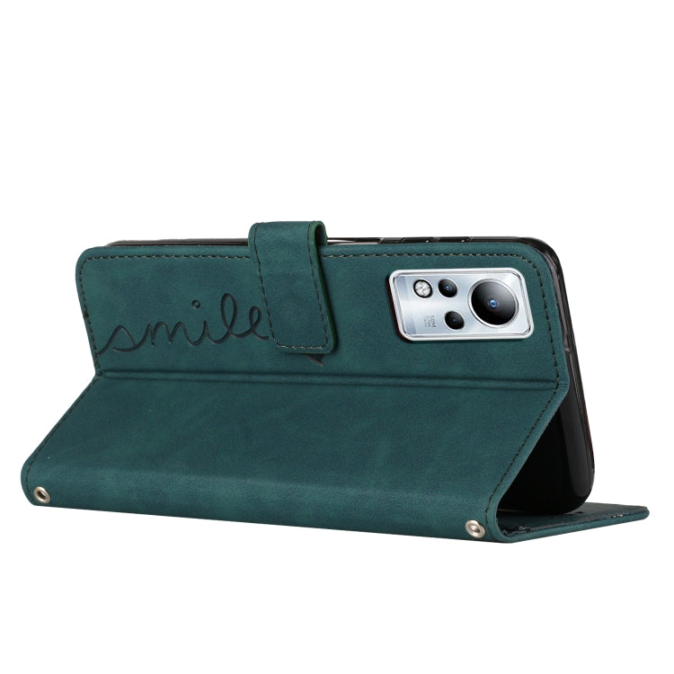 Funda de Cuero para Infinix Note 11 Skin Feel con Patrón Corazón y Cordón (Verde)