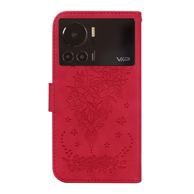 Estuche para Teléfono Infinix Note 12 Vip Butterfly Rose Cuero en Relieve (Rojo)