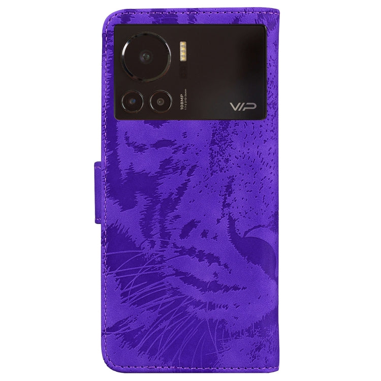 Funda de Cuero para Infinix Note 12 Vip con Tapa Horizontal y Patrón Tiger Embossing (Púrpura)
