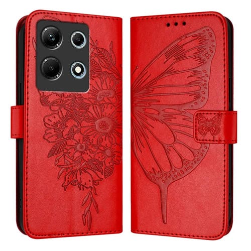 Funda de Cuero para Infinix Note 30 4G con Mariposa en Relieve (Rojo)