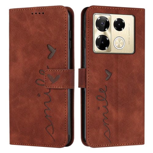Funda de Cuero para Infinix Note 40 Pro 4G / 5G con Relieve y Cordón Largo (Marrón)