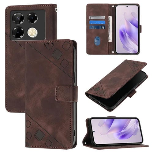 Funda de Cuero Skin Feel para Infinix Note 40 Pro 4G en Relieve (Marrón)