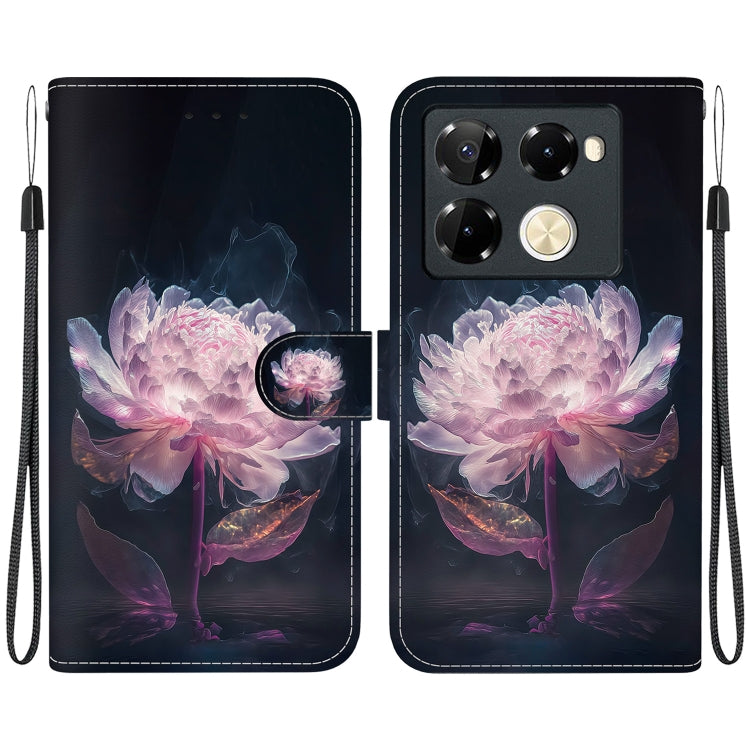 Funda de Cuero para Infinix Note 40 Pro 5G y 40 Pro 4G con Dibujo Coloreado y Textura de Cristal (Peonía Púrpura)