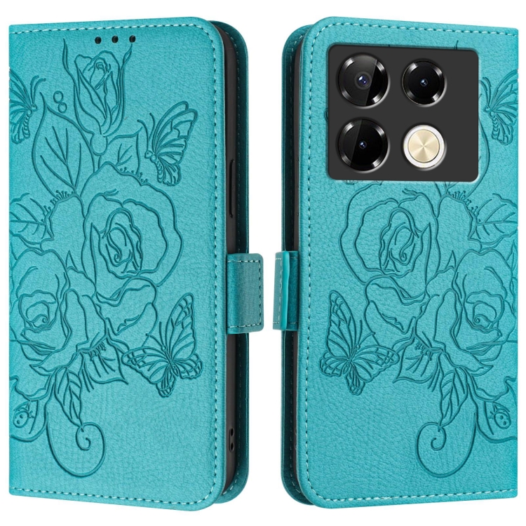 Funda de Cuero Antirrobo RFID para Infinix Note 40 Pro 5G con Relieve (Azul Claro)