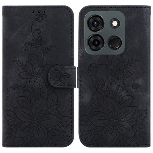 Funda de Cuero con Relieve Lily para Infinix Smart 7 India y Smart 7 Plus (Negro)