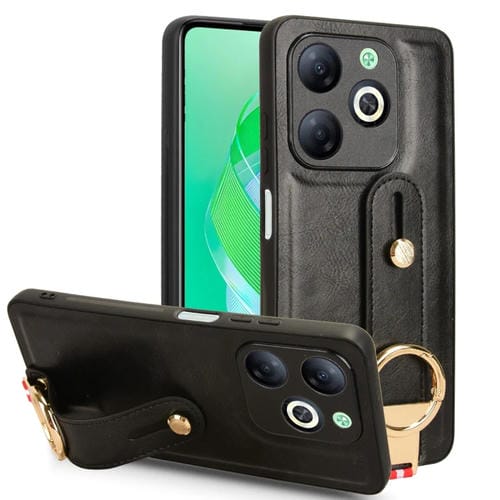 Funda Trasera de Cuero para Infinix Smart 8 con Pulsera (Negro)