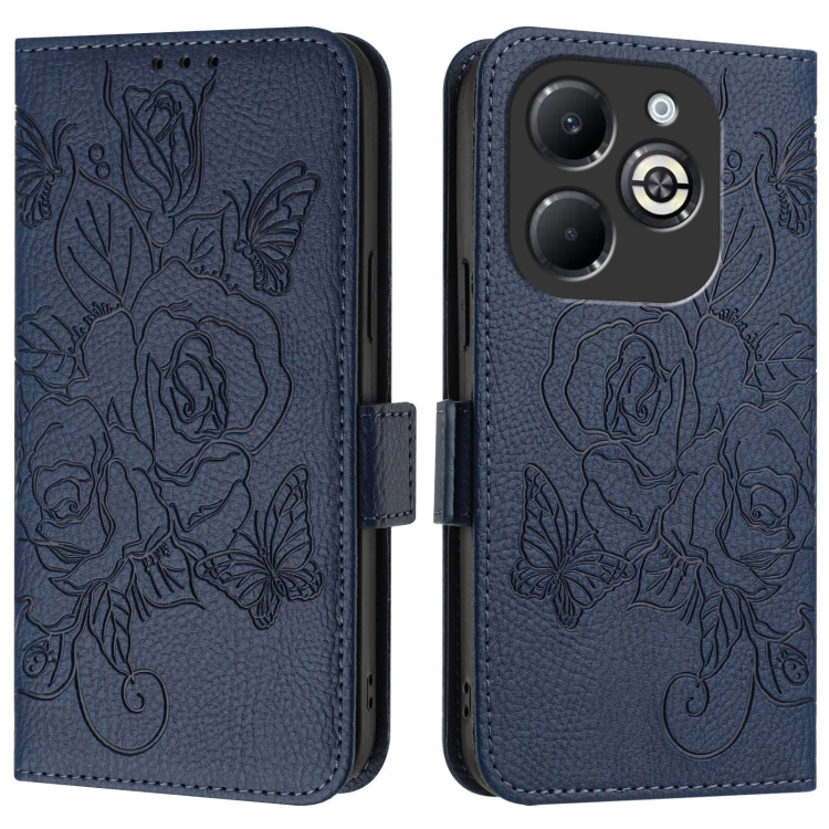 Funda para Infinix Smart 8 Plus / 8 Pro / T8 Plus Cuero Antirrobo Rfid Rosa en Relieve (Azul Oscuro)