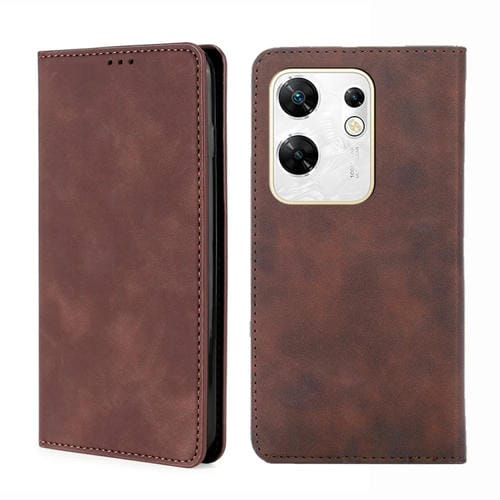 Funda de Cuero Magnética para Infinix Zero 30 4G Skin Feel (Marrón Oscuro)