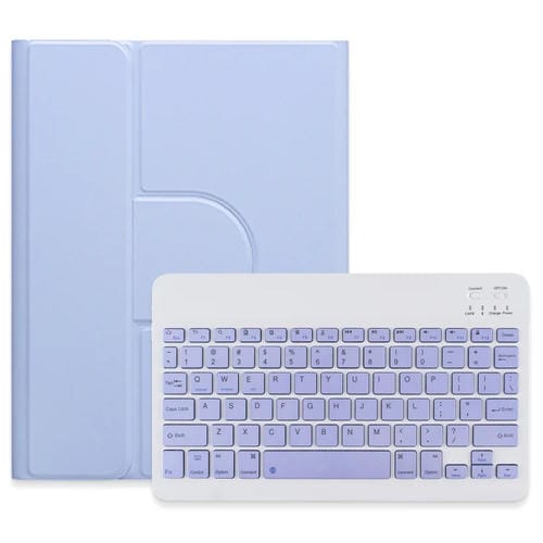 Pour iPad 10.2 2021/Air 2019 Étui en cuir à bouton carré avec clavier Bluetooth rotatif à 360 degrés (violet clair)