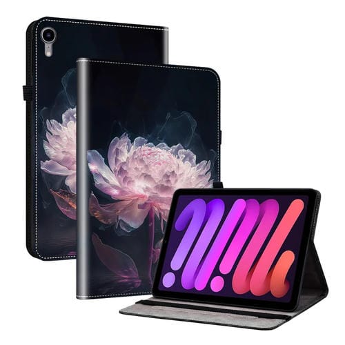 Pour iPad mini 6 Étui pour tablette intelligente en cuir peint à texture cristalline (pivoine violette)