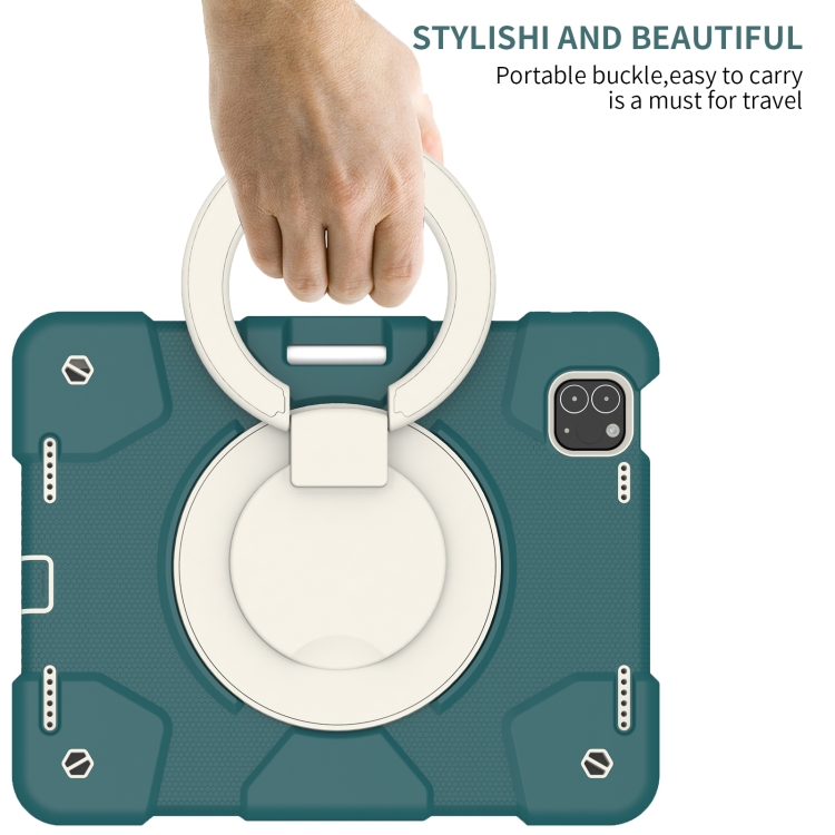 Funda para iPad Pro 11 2020/Pro 11 2018/Air 2020/Air 2022 Silicone + PC con Soporte y Correa (Verde Oscuro)